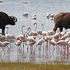 Migratory birds travel thousands of kilometres in search of favourable weather, feeding or breeding conditions. Some birds travel shorter distances than others, such as the greater and lesser flamingo species found in Kenya that move from one alkaline lake to another along the Great Rift Valley from April to June every year.