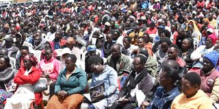 Mourners during a burial service of the late Kelvin Kiptum, the World Marathon Record Holder at Chepkorio Showground in Keiyo South, Elgeyo Marakwet County on February 23, 2024. Kiptum died together with his coach Gervais Hakizimana following a road crash at Flax on the Eldoret-Kaptagat-Eldama Ravine road.