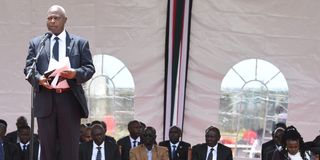 Athletics Kenya President Jack Tuwei during a burial service of the late Kelvin Kiptum, the World Marathon Record Holder at Chepkorio Showground in Keiyo South, Elgeyo Marakwet County on February 23, 2024. Kiptum died together with his coach Gervais Hakizimana following a road crash at Flax on the Eldoret-Kaptagat-Eldama Ravine road.