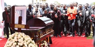 At the Chepkorio showground, the security team had a hectic time controlling the mammoth crowd who turned up for the funeral service. There was thorough security scrutiny at the main entrance to the showground, with mourners being screened before accessing the venue.