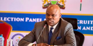 Robert Akumu Asembo, before the selection panel for the Independent Electoral and Boundaries Commission chairperson.