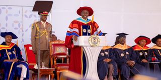 President William Ruto speaks during the second graduation ceremony of the National Defense University-Kenya, in Lanet Nakuru.