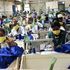 He told me about his busy weekend as he led me past the Redeemed Gospel Church, down to clammy stalls in the market. We jumped over a puddle and entered the first 10-by-10-metre stall, now a busy industry churning out blue trousers and shirts.