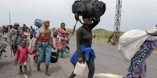 Internally displaced civilians from the camps in Munigi and Kibati, carry their belongings as they flee following the fight between M23 rebels and the Armed Forces of the Democratic Republic of the Congo (FARDC), in Goma, eastern Democratic Republic of Congo, January 26, 2025.