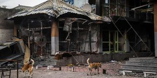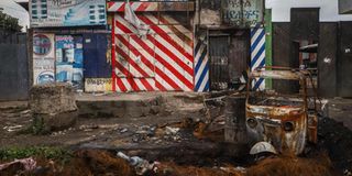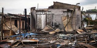 Burned commercial buildings which were set on fire by a mob during the violence after the assassination of Oromo's pop singer Hachalu Hundessa. PHOTO | AFP
