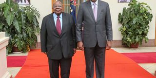 President Uhuru Kenyatta with Former President of Tanzania Benjamin Mkapa when he called on him at State House, Nairobi in 2016. PHOTO | FILE | PSCU