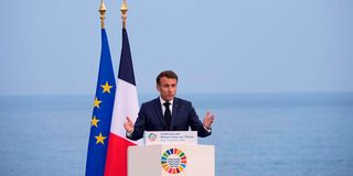 French President Emmanuel Macron speaks during the third United Nations Ocean Conference in Nice, France June 9, 2025.