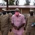 "Hotel Rwanda" hero Paul Rusesabagina (in pink inmate's uniform) arrives at Nyarugenge Court of Justice in Kigali, Rwanda, on October 2, 2020, surrounded by guards of Rwanda Correctional Service (RCS).