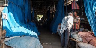 A man buys spices from one of the few open stalls at the market in Humera, Ethiopia on November 22, 2020.