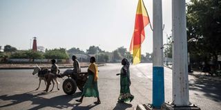 People walk in the streets of Humera, Ethiopia on November 22, 2020.