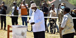 Uganda's President and the leader of the ruling National Resistance Movement (NRM) party, Yoweri Museveni, casts his vote during the general election, at Kaaro Secondary School in Rwakitura, Kiruhura district, Uganda January 15, 2026.