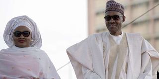 Nigerian President Mohammadu Buhari arrives with his wife Aisha, before taking oath of office at the Eagles Square in Abuja, on May 29, 2015.