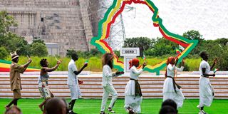 Traditional dancers perform during the inauguration of the Grand Ethiopian Renaissance Dam (Gerd) built along the Blue Nile in Guba, Benishangul-Gumuz region, Ethiopia, September 9, 2025.