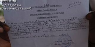 Aliou Candé's birth certificate from Guinea-Bissau.