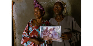Aliou’s father, Samba, and his mother, Aminata, holding a family photo in Guinea Bissau on May 26 this year.