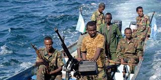 The Somali coast guard on patrol in the sea.