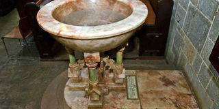 The marble baptismal font in the cathedral. PHOTO | FRANCIS NDERITU | NATION MEDIA GROUP