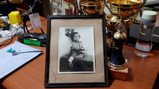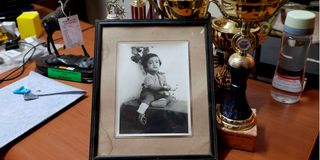 A portrait of rally driver Asad Khan is displayed at his desk during an interview with his younger brother Adil Khan on 16|12|2022. Asad who was then fighting for his life at Avenue Hospital in Nairobi, passed on at the hospital on 18|12|2022.