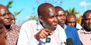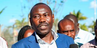 Chairman of the Kenya Aviation Workers Union Walter Ongeri addresses journalists on January 20, 2026, at Jomo Kenyatta International Airport. The Union has issued 7 days strike notice to the Kenya Civil Aviation Authority over salary increases for its employees.