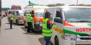 National Transport and Safety Authority officials and police officers during a crackdown on traffic laws violators at Salgaa on the Nakuru-Eldoret highway on December 4, 2025.