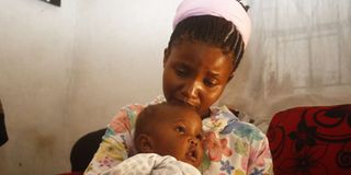 Rehab Nyawira, girlfriend to the late Sam Gitau, with their child Susan Wairimu on October 17, 2018 during an interview. Mr Gitau was among the missing passengers.