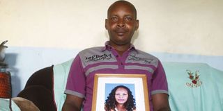 David Gachuki displays a photo of his late daughter Veronicah Muthoni, one of the passengers who died in the accident.