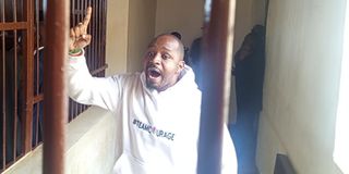 Activist Boniface Mwangi appears before the Kahawa Law Courts.