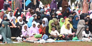 Muslims from Nakuru town at Rahma Mosque grounds for Idd prayers on May 2, 2022.