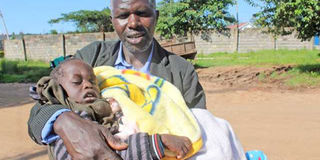 Robert Rotich nurses his son Ezra Kiprotich, who has cerebral palsy, at his home in Siwot village, Longisa ward, Bomet County. PHOTO | VITALIS KIMUTAI | NATION MEDIA GROUP