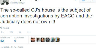 “The so-called CJ's house is the subject of corruption investigations by EACC and the Judiciary does not own it!”