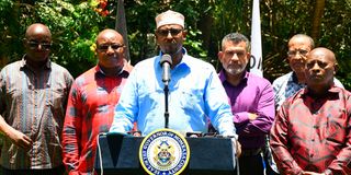 Council of Governors (CoG) Chairperson Ahmed Abdullahi at a past event, flanked by other leaders.