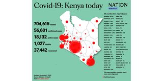 The Nation picked a sample of five randomly selected counties where there have been no mass political rallies, which together reported only 151 new Covid-19 cases. Wajir, West Pokot, Kwale, Makueni and Vihiga recorded 416 cases since Mashujaa day and 567 cases on the last day of October.