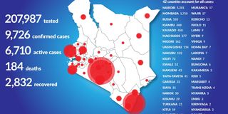The new cases, which pushed Kenya closer to the 10,000 mark, were found following the testing of 1,403 samples in the last 24 hours. This raised the total number of samples tested in the country in four months to 207,987.