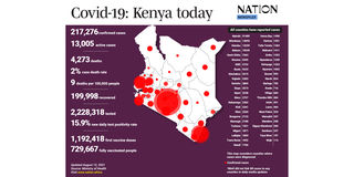 During the same period, 29 deaths were reported, all of them being late deaths reported after conducting facility record audits on diverse dates in the months of April, May, June, July and August 2021. This now pushes the cumulative fatalities to 4,302.