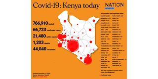 Confirmed cases of Covid-19 in Kenya has risen to 66,723 after 919 new cases were recorded in the last 24 hours, Health Cabinet Secretary Mutahi Kagwe said on Thursday.