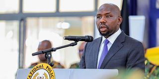 Interior Cabinet Secretary Kipchumba Murkomen addresses the media at the National Police College Embakasi, Nairobi on January 29, 2026.