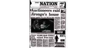January 6, 1994: On Christmas Eve 1993, Jirongo’s house in Lavington, Nairobi, was raided by auctioneers who took a litany of assets, including his green Mercedes car that had automatic windows, a sunroof, a central locking system and a mobile phone. Gichuru Njihia reported that the auctioneers left “only a wooden stool to sit on”.