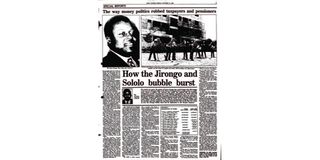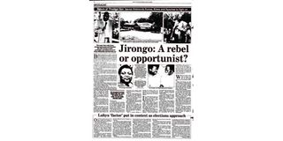 October 15, 1993: Mr Jirongo was an embattled man as the Moi administration targeted some of the assets he had accumulated. Journalist Alex Cege wrote: “The lobby group [YK ’92] was inextricably tied to its flamboyant millionaire-chairman, Cyrus Jirongo, now a haunted man, the victim of the very system he shouted his voice hoarse supporting in the run up to the General Election last year, the sacrificial lamb in an orgy so characteristic of the Kenyan political landscape.”