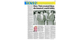 April 24, 1993: President Moi stopped the activities of YK’92 through a statement from State House, Nakuru. He said on April 23 that some members of the lobby were working with the opposition to tarnish the names of people loyal to him, the country and Kanu. Opposition members, among them Paul Muite and Mwai Kibaki, said the disbandment was because the group had run its course. Mr Muite said: “The organisation had served its purpose ... It was set up by President Moi with the objective of distributing Sh25 billion to buy Kanu’s victory.”