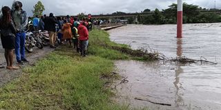 The only bridge along Namanga road, linking the road to Mombasa road, was completely submerged as the river turned into a flowing sea.