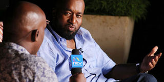 Mombasa Governor Hassan Joho (right) in a live TV interview with NTV news anchor Nimrod Taabu at Pride Inn Paradise Beach Resort in Mombasa on March 22, 2017. He will record a statement with detectives over the validity of his academic papers. PHOTO | KEVIN ODIT | NATION MEDIA GROUP