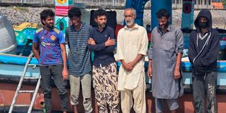 Some of the six Iranian crew members under tight security after a seizure of narcotics aboard an Iranian Vessel worth Sh8.2billion some 650 km off the shore of Mombasa.