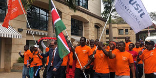 Athlete David Rudisha leads team carrying Kenyan and Dusit flags to mark reopening of the hotel on July 31, 2019 after the January terror attack. PHOTO | BRIAN OKINDA | NATION MEDIA GROUP
