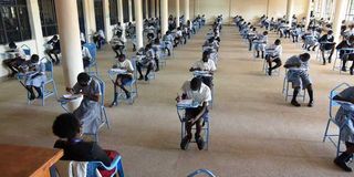 Kakamega Hill school KCPE 2021 candidates sitting exams on day one at the school.