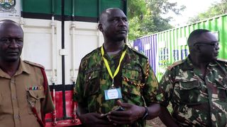 Government officials oversee the distribution of KCSE examination papers at Kiawara Police Station in Nyeri County on November 4, 2024.