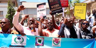 Technical University of Kenya staff participate in a demonstration at the institution in Nairobi on February 17,2025.