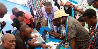 Headteachers verify their school enrolment details captured by the Ministry of Education during the 2025 Kepsha Annual Delegates Conference in Mombasa on November 11, 2025.