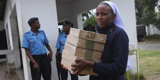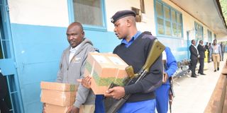 Examination materials arrive at St George's Primary School in Nairobi on October 30, 2023 for the start of the KCPE examinations.