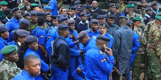 Security officers in Westlands Sub-county during the distribution of KCPE/KPSEA examination papers.