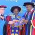 MKU founder and chair Simon Gicharu (right) during the launch of Mount Kenya University Rwanda (MKUR) book on Friday. The book documents the institution's journey and milestone. The event also marked the unveiling of a hotel by MKU to support the institutions hospitality and tourism courses.